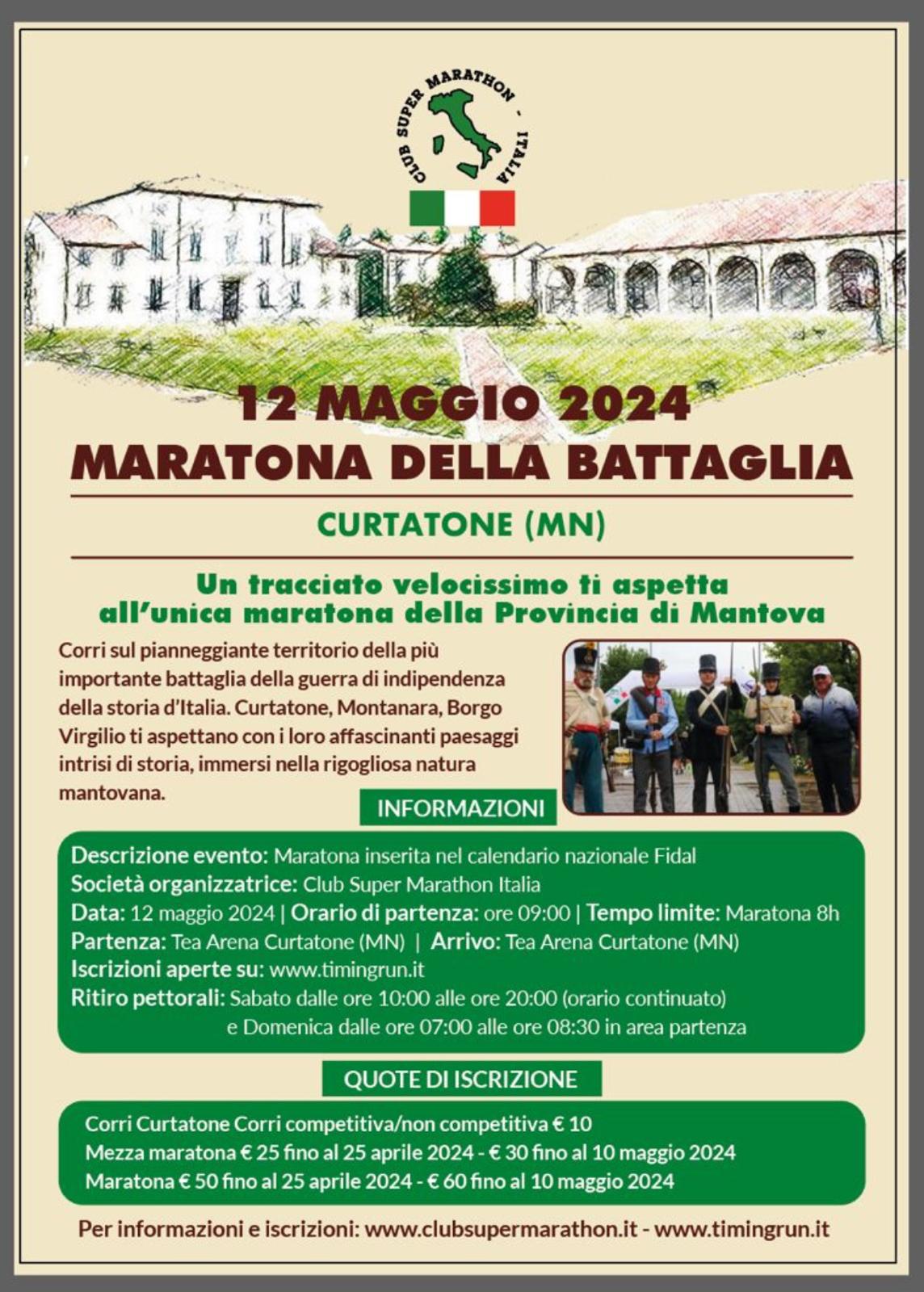 La Maratona della Battaglia Curtatone, il 12 maggio a Mantova