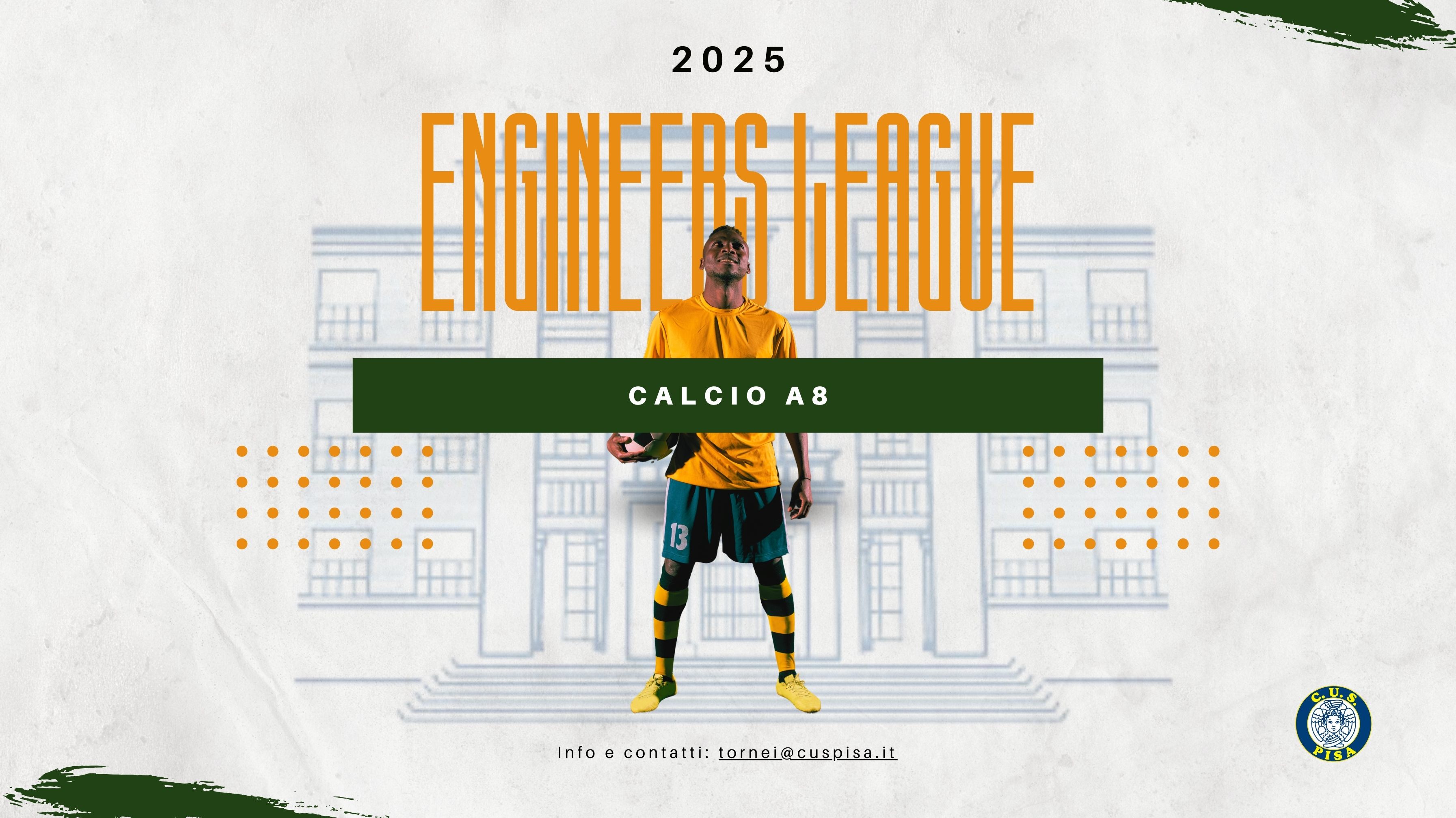 Il CUS PISA e la Scuola di Ingegneria sono lieti di annunciare la prima edizione della Engineers League, il torneo di calcio a 8 tra i corsi di studio che si terrà al CUS Pisa per chi studia Ingegneria.