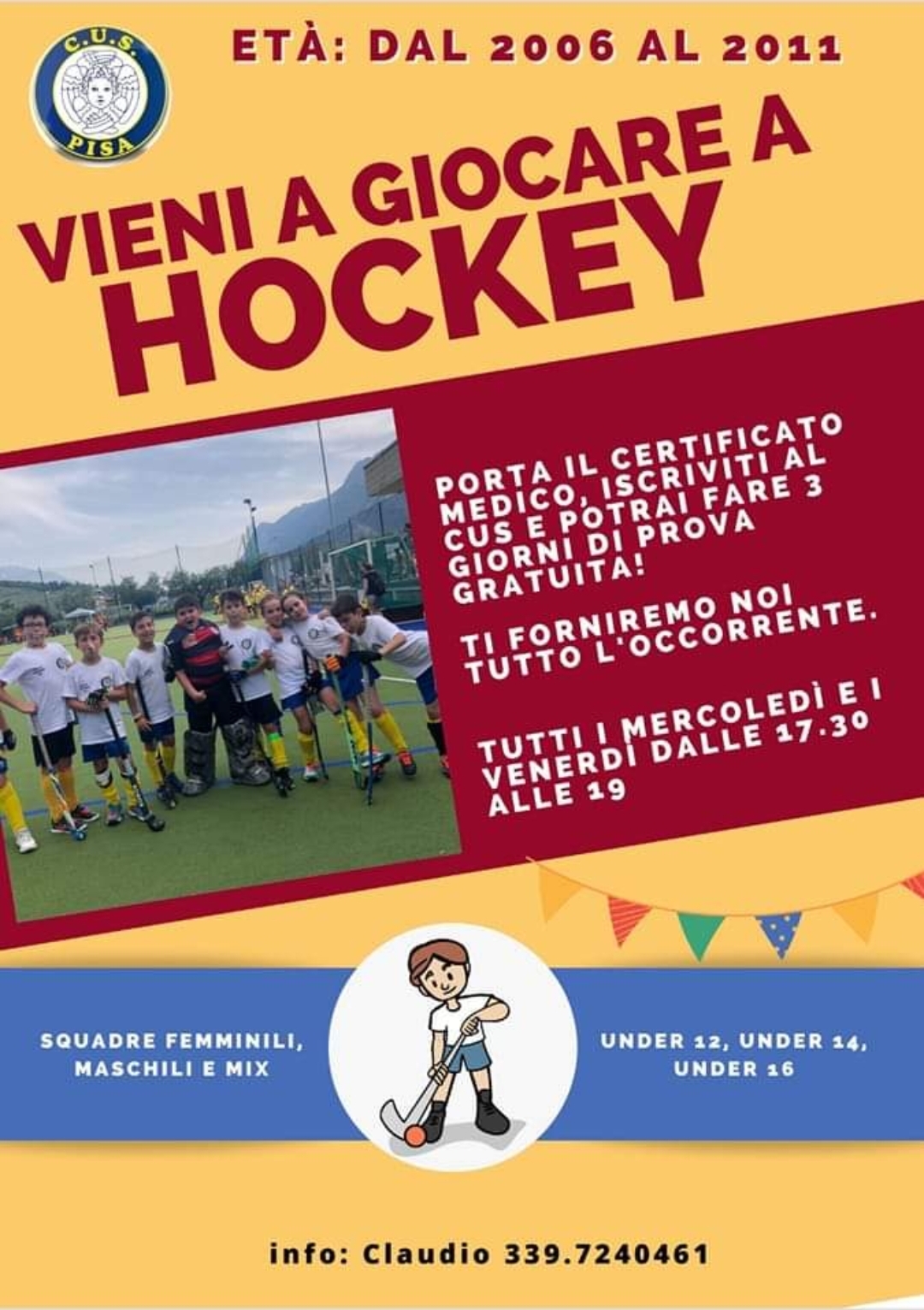 PISA - Al via al Cus Pisa i corsi di Hockey riservato ai bambini dal 2006 al 2011.
