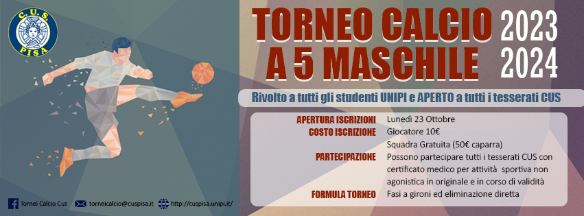 Iscrizioni presso la segreteria del cus Info e domande : Questo indirizzo email è protetto dagli spambots. È necessario abilitare JavaScript per vederlo.